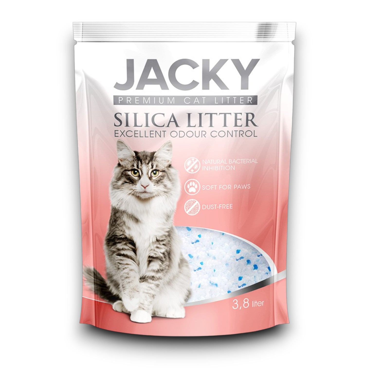 🔹 Öntsön kb. 5 cm vastagon a Jacky szilika alomból az alomtálcába.
